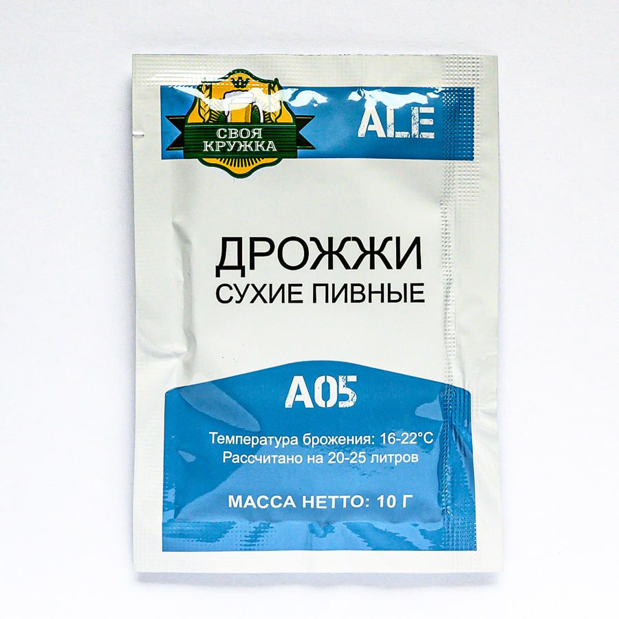 Дрожжи сухие пивные "Своя кружка" Ale A05 для Элей (верхового брожения).Применение: Ale, Bitter, IPA, Stout. Рассчитано на 20-25 литров. Состав: дрожжи, Эмульгатор (Е491). Срок годности: 18 месяцев.Тип дрожжей верховыеТемпература брожения, ºС 16 — 22..