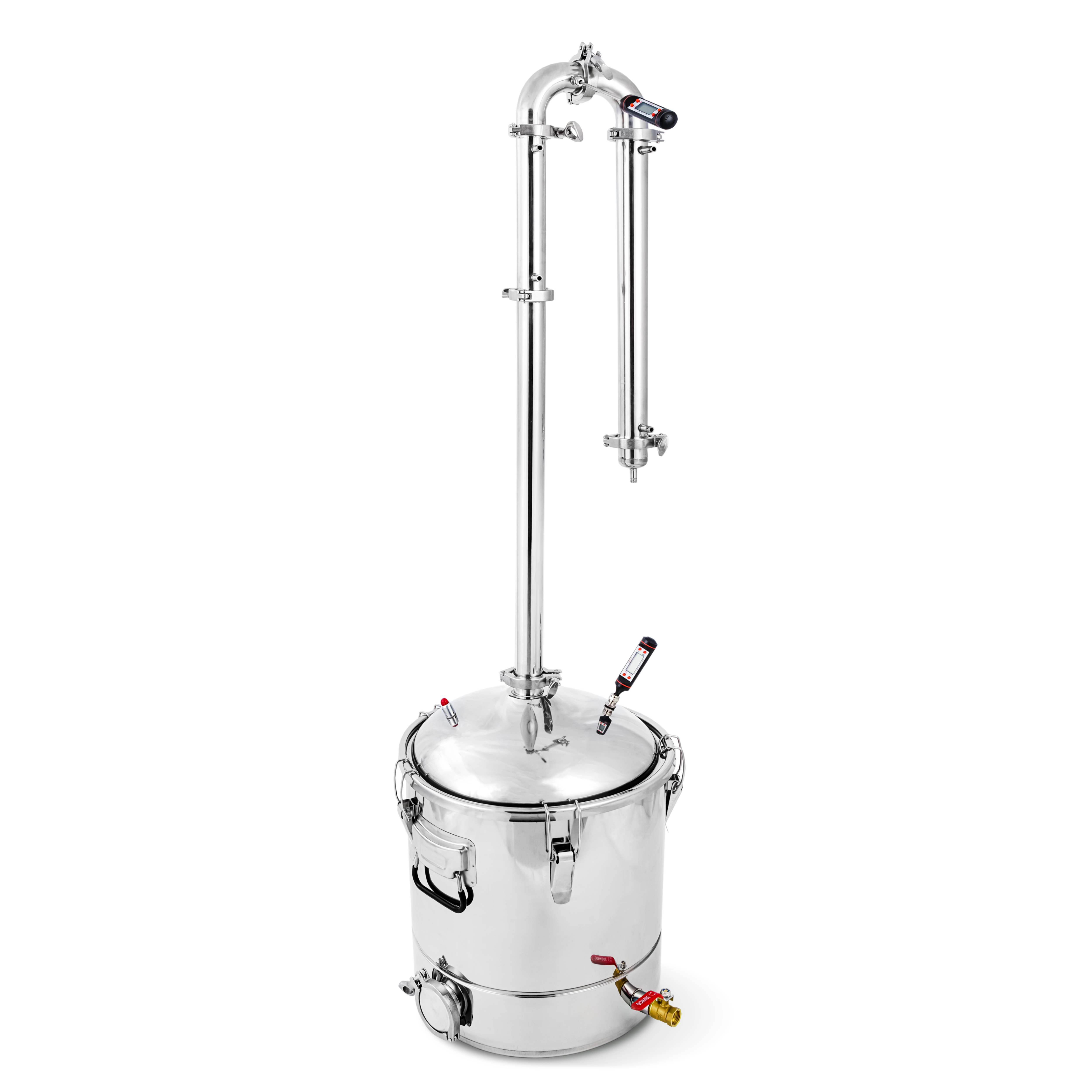 Mash column Gorilych 30/350/t CLAMP (3 inches) allows the distiller to work in the potstill mode for distilling mash into raw alcohol and obtain aromatic distillates, and in the rectification mode to obtain high-quality alcohol 96.6% with a capacity ..